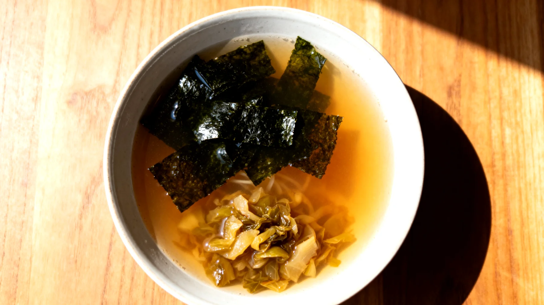 Traditionell wird Miso-Suppe mit Tsukemono, japanischem eingelegtem Gemüse, ergänzt. Ob fermentierter Rettich, eingelegter Ingwer oder milchsauer vergorener Chinakohl – diese Zutaten bringen zusätzliche probiotische Kulturen und einen Hauch Säure mit, die den Umami-Geschmack des Miso perfekt abrunden. Die Milchsäurebakterien aus dem fermentierten Gemüse ergänzen die Koji-Kulturen aus dem Miso und schaffen so ein noch vielfältigeres Mikrobiom.