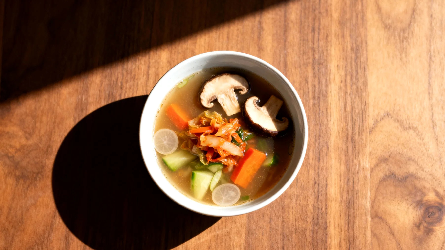 Während Miso und fermentiertes Gemüse die Probiotika liefern, übernehmen Shiitake-Pilze eine ebenso wichtige Rolle: Sie enthalten lösliche Ballaststoffe, die den nützlichen Darmbakterien als Nahrung dienen und deren Vermehrung fördern. Zudem wirken sie immunstärkend und ergänzen die probiotischen Effekte der fermentierten Zutaten auf ideale Weise.